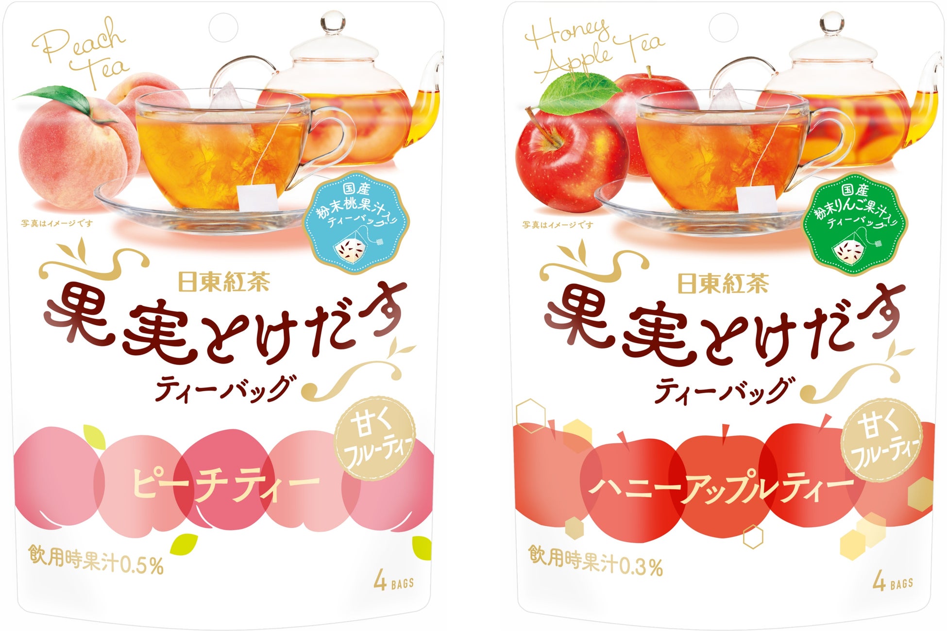 果実の甘み・酸味と紅茶の味わいが楽しめる♪甘くフルーティーなフルーツティー 日東紅茶「果実とけだすティーバッグ ピーチティー4袋入り」「果実とけだすティーバッグ ハニーアップルティー4袋入り」新発売