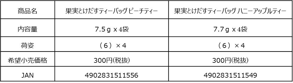 粉末果汁を使用した果実の風味と茶葉本来の味わいが楽しめる“果実とけだすティーバッグ”シリーズ