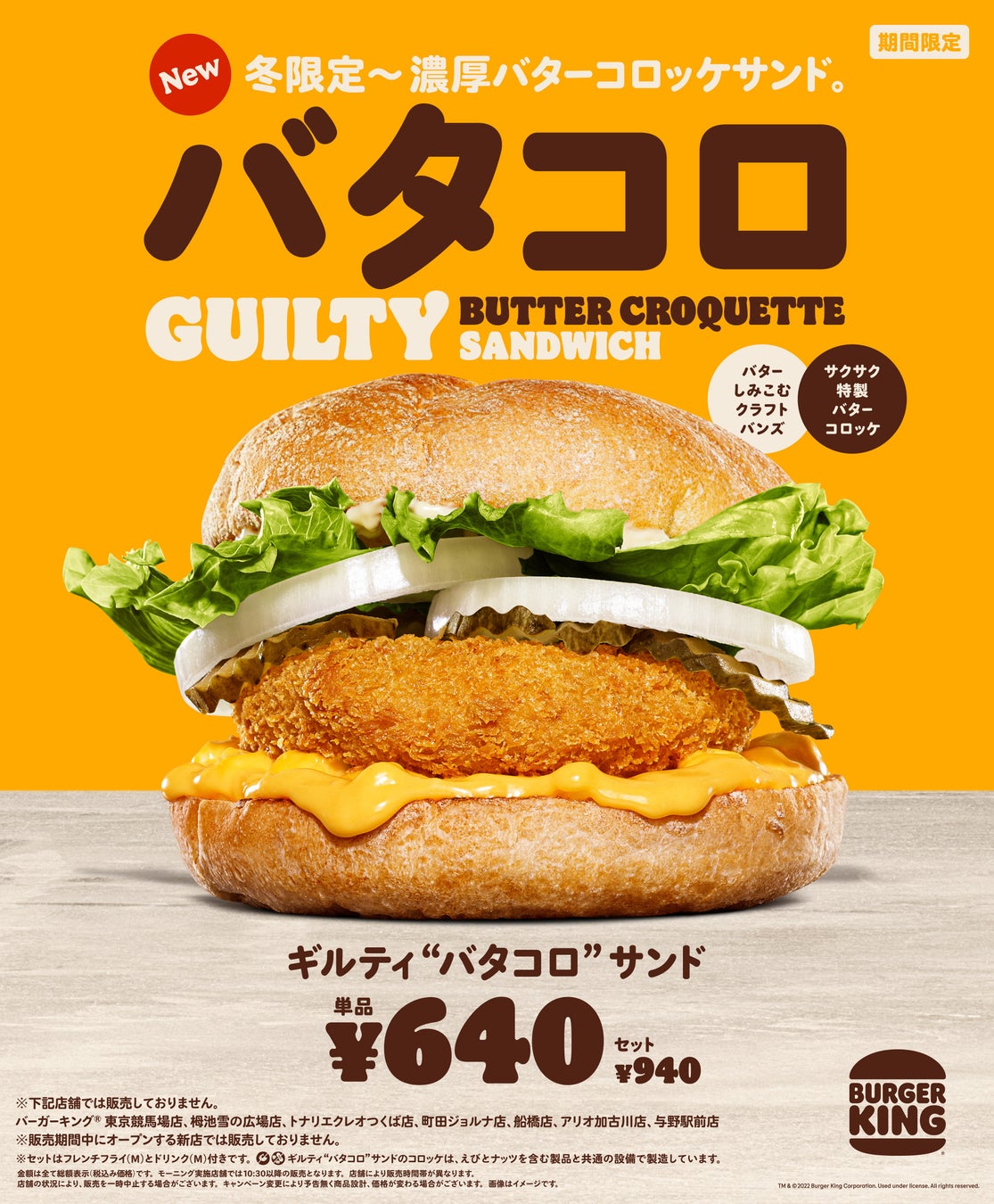 バーガーキング® から冬限定“バタコロ”新登場!バターしみこむクラフトバンズに、たっぷりのバタークリームを包み込んだ特製バターコロッケがリッチな味わい! 『ギルティ“バタコロ”サンド』新発売