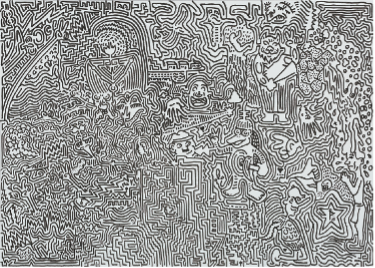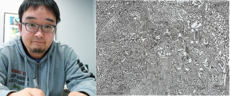1977年生まれ。彼が真っ白いキャンバスに表現するのは、0.03から0.7mmまでのペンで描く唯一無二の個性豊かなキャラクター達。それぞれ表情や格好が違い、画面の中で踊っているように表現される。