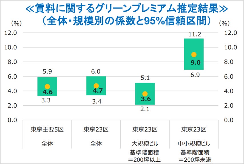 東京23区に所在するオフィスデータを活用し、環境不動産認証の取得有無による賃料のグリーンプレミアムをビル規模別に分析