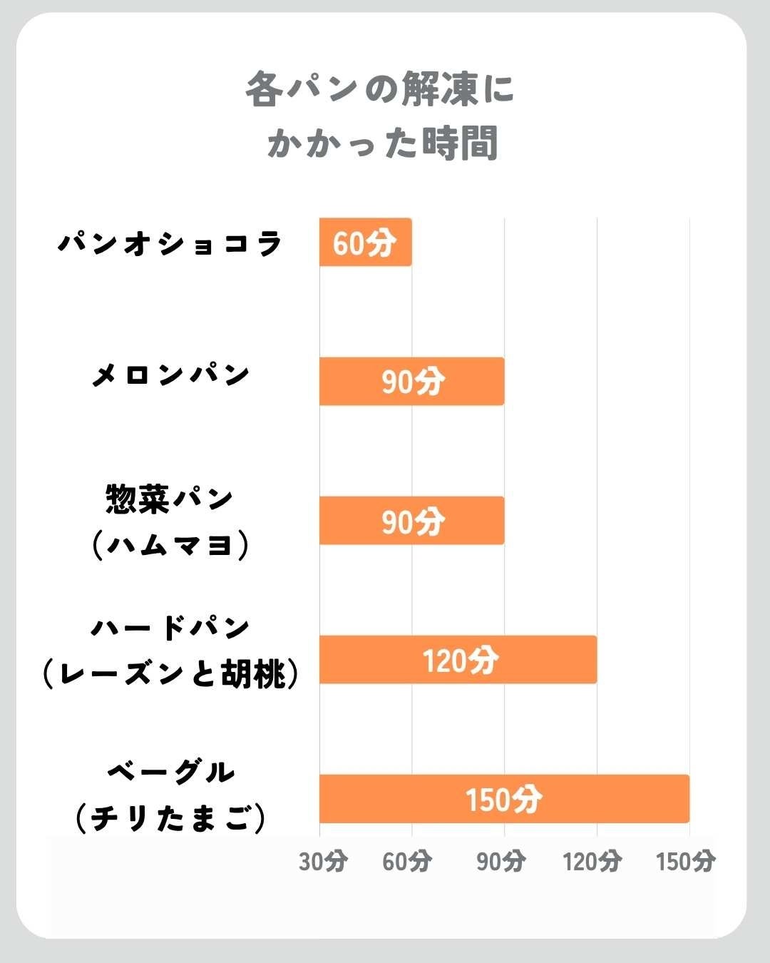 方法:冷凍保存していたパンを常温(26℃)に置き、30分ごとに中心部の温度を計測。中心温度が20℃を超えた時点で解凍完了と判断。