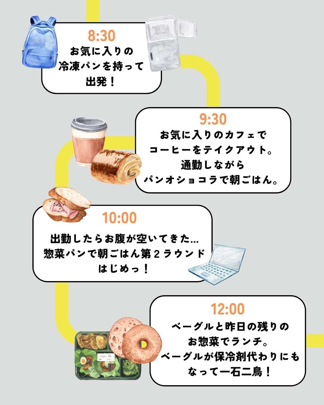 実際にrebakeに届いたパン好きの声を元に、この夏おすすめの冷凍パンの活用術をスケジュールにまとめました。