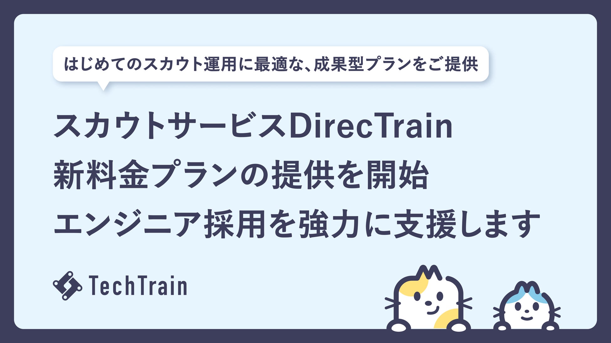 TechTrainが提供するスカウトサービス「DirecTrain」はこのたび、採用予算や採用力(承諾率)に応じた最適な料金プランを選べるよう、「面談成果プラン」「承諾成果プラン」の提供を開始しました。