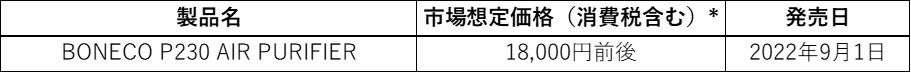 シロカ株式会社(東京都・千代田区)が日本の販売代理店を務める、スイスの老舗家電メーカー BONECO AG社より、コンパクトサイズで手軽に持ち運べる、スタイリッシュでモダンなデザインの空気清浄機「BONECO P230 AIR PURIFIER」を2022年9月1日に発売します。