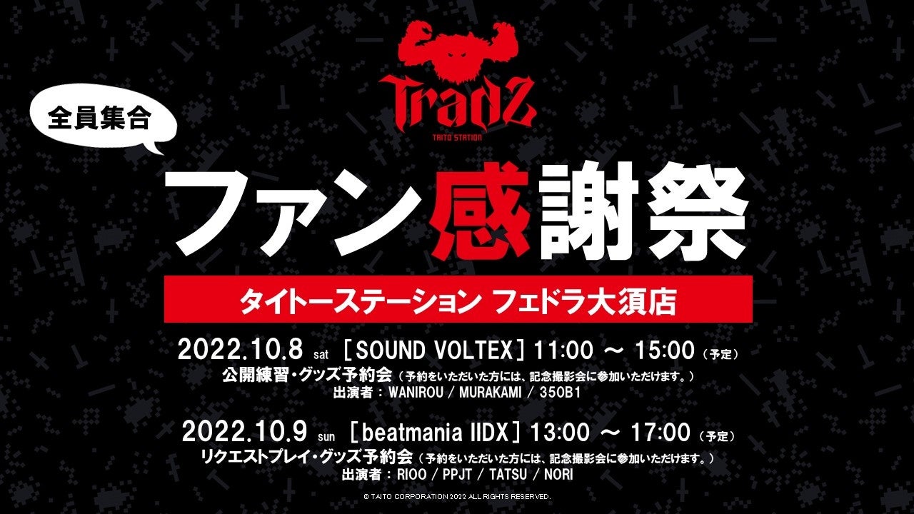 ※当日の入場上限などの情報に関しては、TradzのTwitter公式アカウント(@Taito_Tradz)にてお知らせいたします。