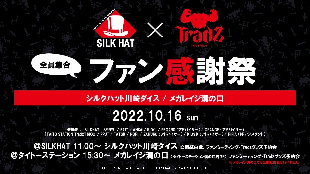 SILKHATおよびタイトーステーションそれぞれのお店に、SILKHATとTradzのメンバーが集結いたします。
