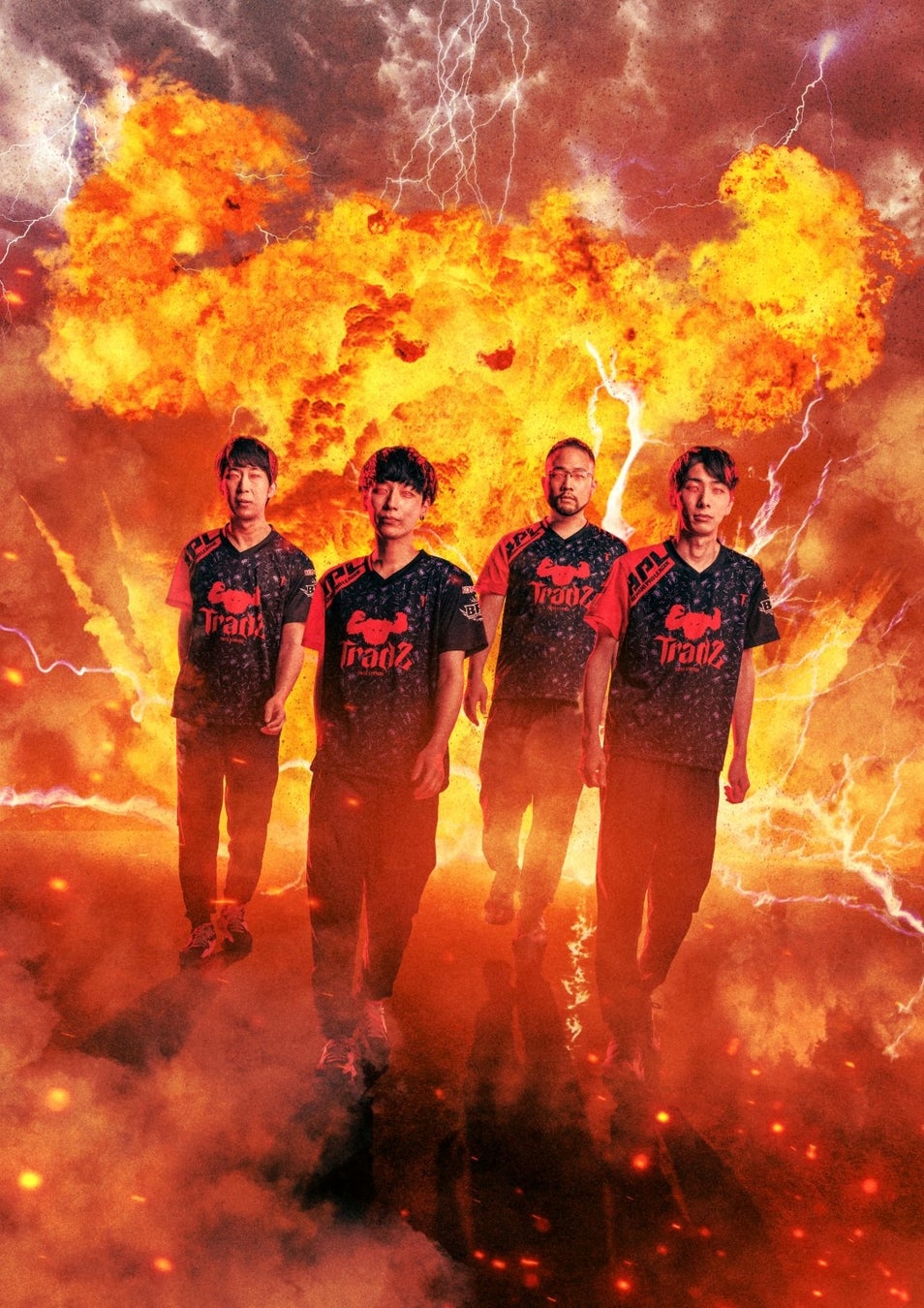 beatmania IIDXの選手4名が燃え盛る炎の中を闊歩するイメージのビジュアルは Tradzのアートディレクションを手掛けるトトトによるもので、ファンの皆様への感謝のメッセージとなります。