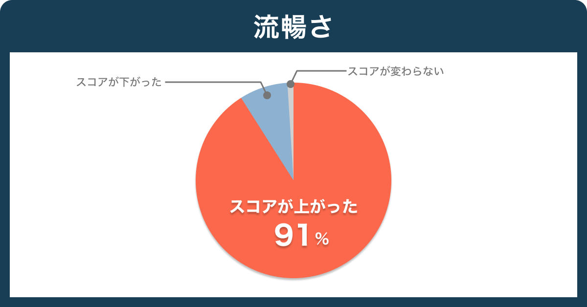 ・テスト項目のなかで、”流暢さ”においては90%以上の対象者が前回を上回る結果となった