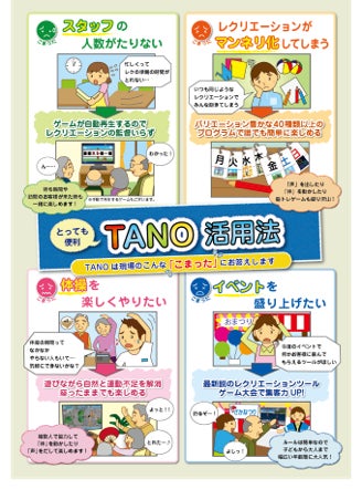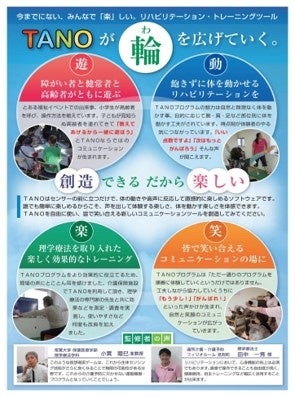 「TANO」は、センサーテクノロジーを活用した次世代福祉機器で、装着や接触不要な使い方が特徴です。約300種類の豊富なコンテンツは、現場の声や利用者、専門家の意見を取り入れて開発され、現場での利用を容易にするよう設計されています。