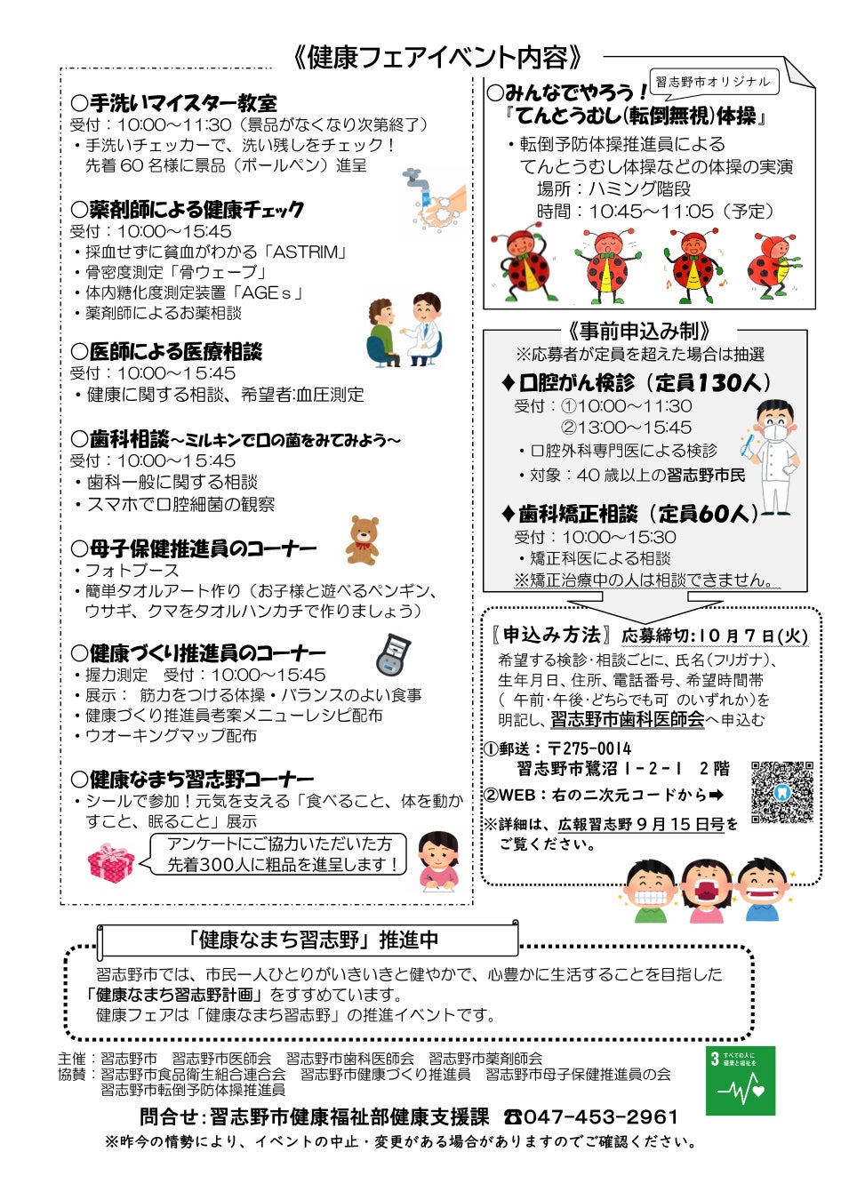 【千葉県習志野市】10月26日(日)福祉ふれあいまつり&健康フェア