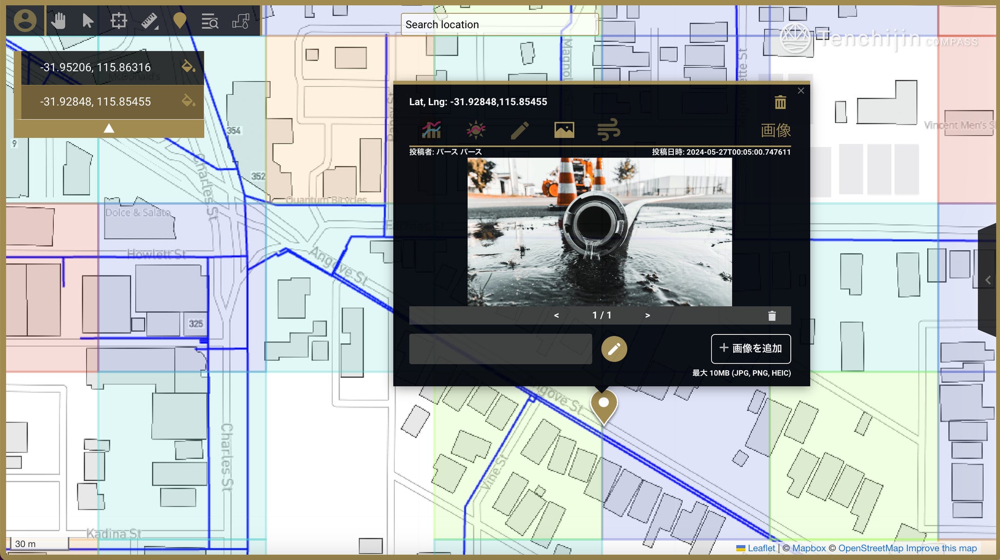 また、「画像アップロード機能」の追加によって、視覚的な情報を共有・保存することが可能になりました。老朽化した水道管の様子など、文字だけでは表現が難しい情報も記録することができ、現場作業時での活用を想定しています。