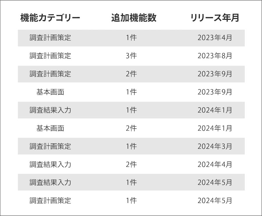 現場で従事する水道事業者さまのニーズに応えるべく、サービス開始から1年間、スタートアップならではのスピード感を活かし、様々な機能追加を行ってきました。その結果、プロダクトの使いやすさが向上し、お客様からご好評の声をいただいております。この1年の間に、お客様の要望を受けて実装した機能の一覧は以下の通りです。