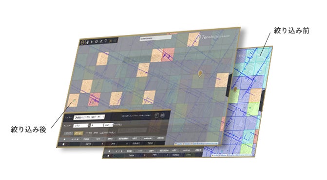 そのほか、任意の属性やフィルターによる「漏水リスク評価結果の絞り込み表示機能」も追加いたしました。この機能により、事業者さまそれぞれのニーズに応じた漏水調査箇所の検討が可能となり、調査箇所選定・業務費積算の効率化が期待されます。