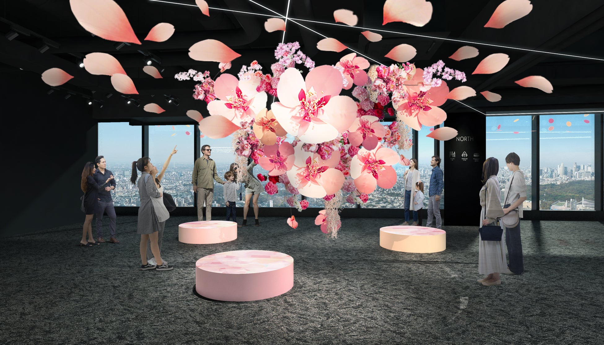 渋谷上空229mのSHIBUYA SKYに、春の訪れを告げる花々のファンタジー空間が誕生「Flower View|花ひらく、天空の庭」4月8日(火)より開催