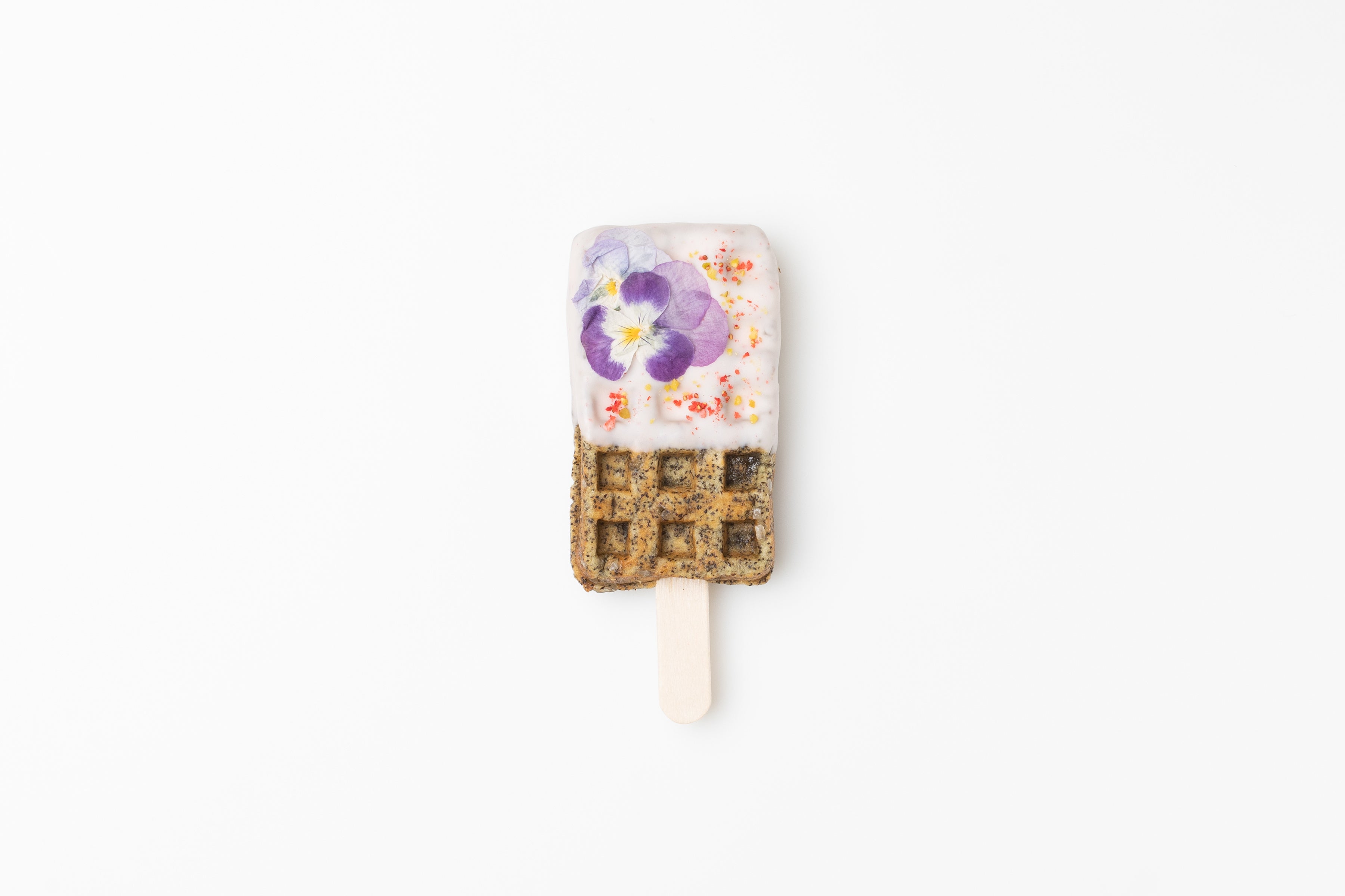 「フラワーピーチティー」は、食べる直前まで冷やすことで、練り込まれたドライピーチのシャリシャリ食感が倍増いたします。ピーチとワッフルの”しゃりもち”食感と、夏らしい爽やかな香りをお楽しみください。