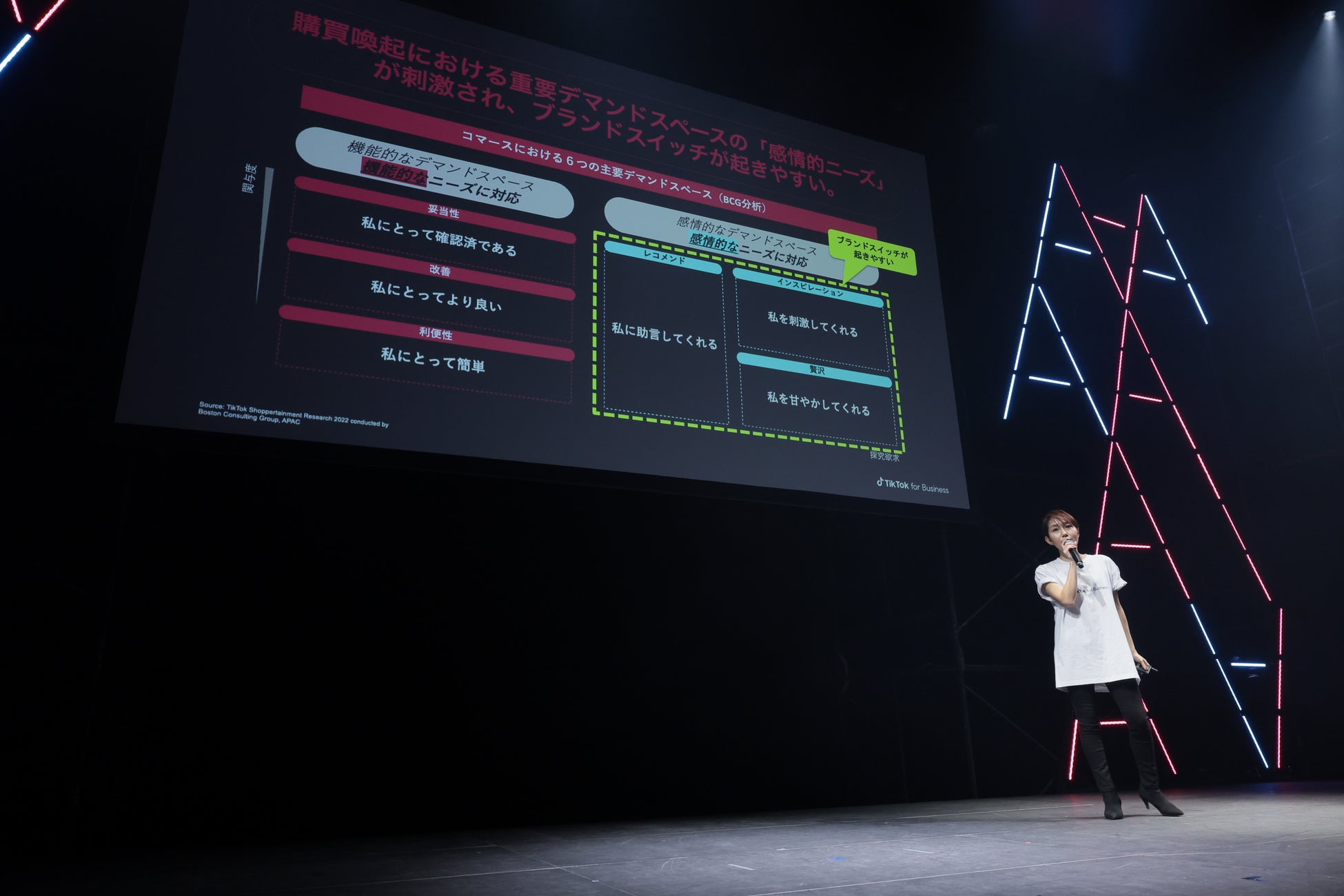 日本だけでなく世界で行ったリサーチの結果、TikTokは全てのファネルに強く関与しており、世界中の消費者の購買行動に影響を与え、“楽しい”や“嬉しい”などの「感情的ニーズ」を満たしているため、ブランドスイッチを起こしやすいということが判明しました。