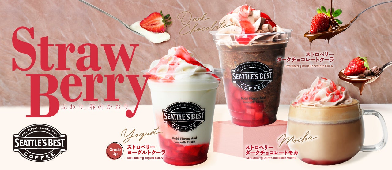 シアトルズベストコーヒーが 「ストロベリー ドリンク3種」を期間限定販売!