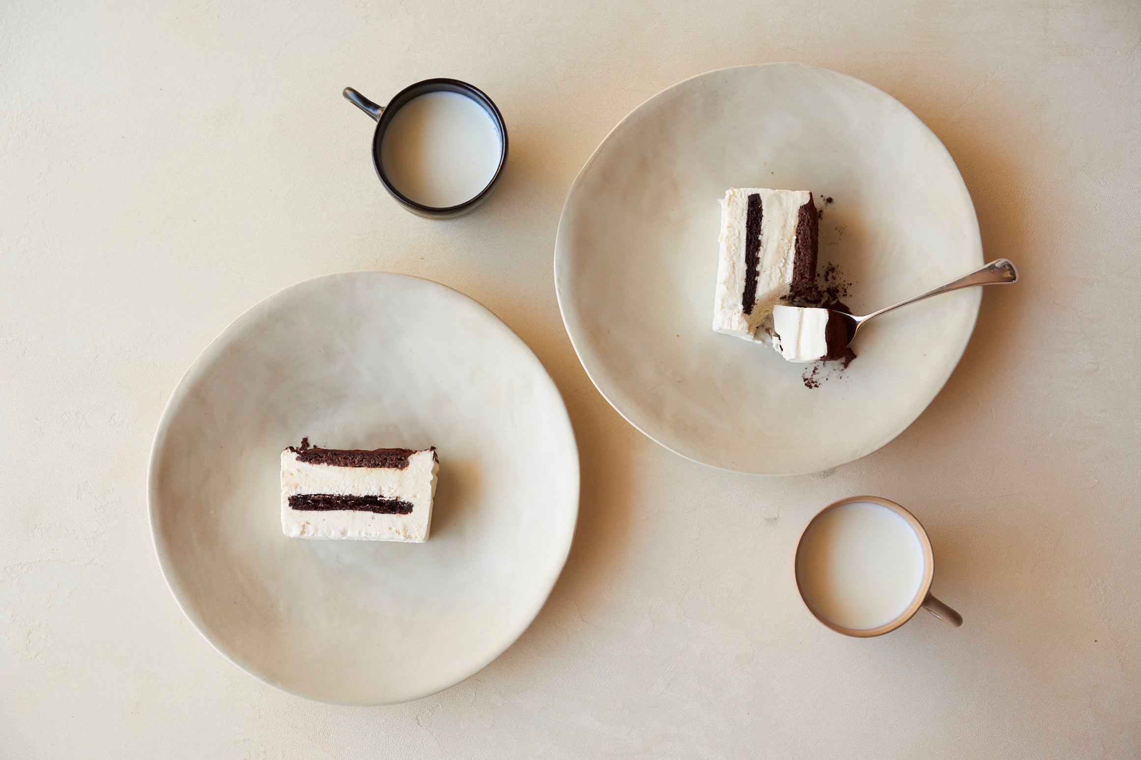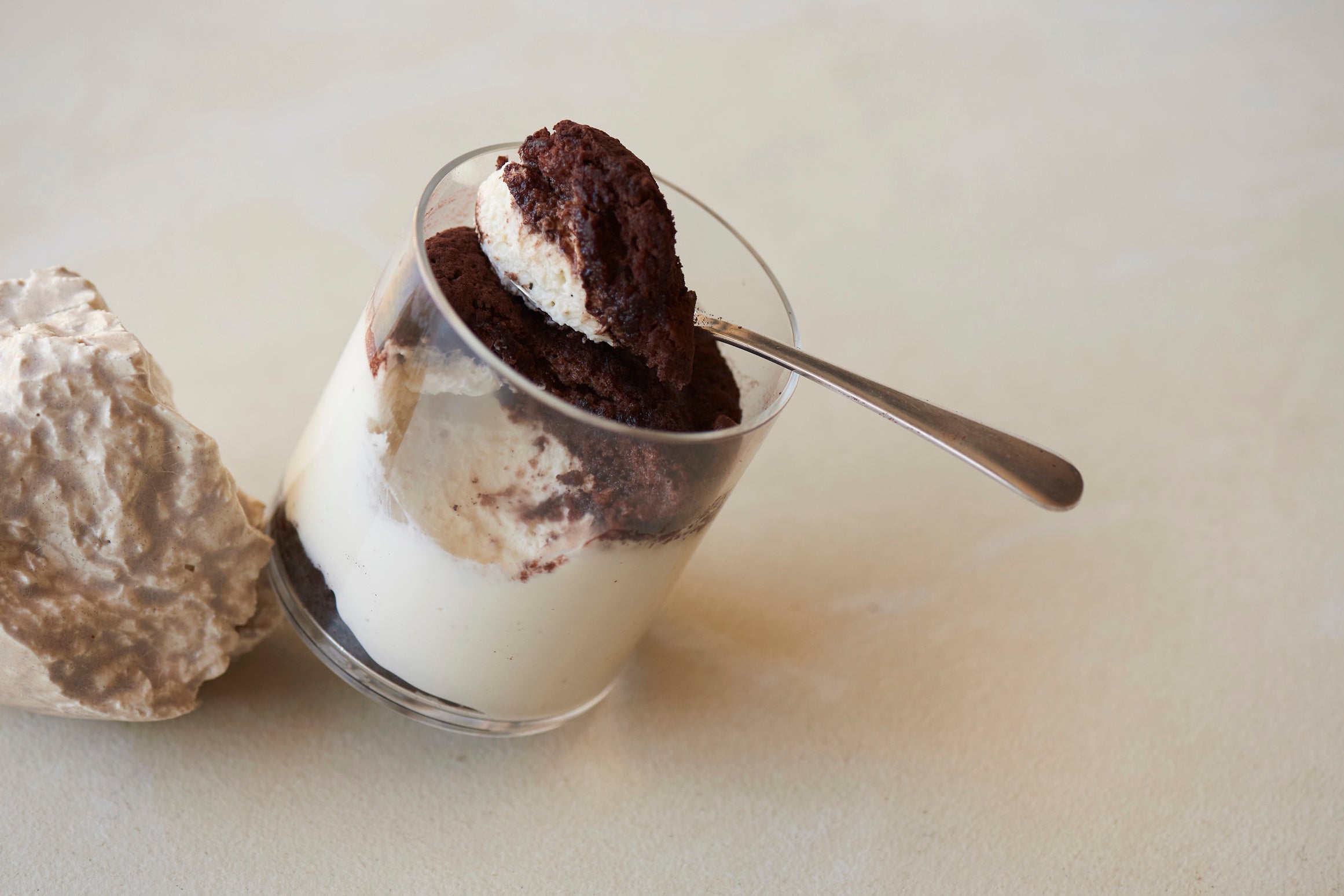 コーヒーやカカオ、ほうじ茶が生み出す香ばしい香りと、ムースのように淡い口溶けが特長のティラミスをカップにしました。すぐにお召し上がりいただけるように、イタリアンメレンゲの量を調整することで、ほんのり感じる甘味はそのままに、口の中に少し長くとどまる食感とコクに仕上げました。