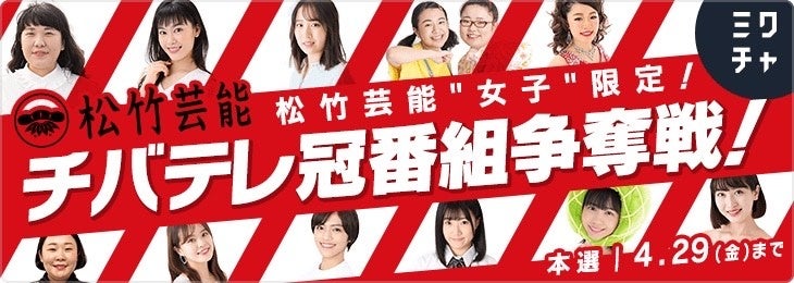 4月20日(火)18:00より、配信アプリ「ミックスチャンネル」にて、「松竹芸能"女子"限定!チバテレ冠番組争奪戦!」が開催されております。