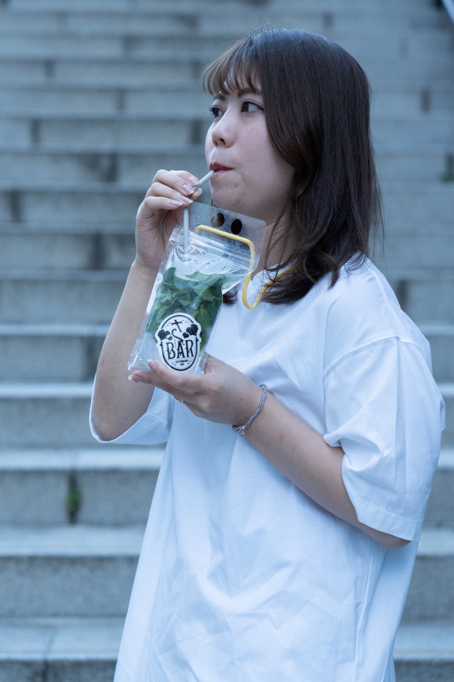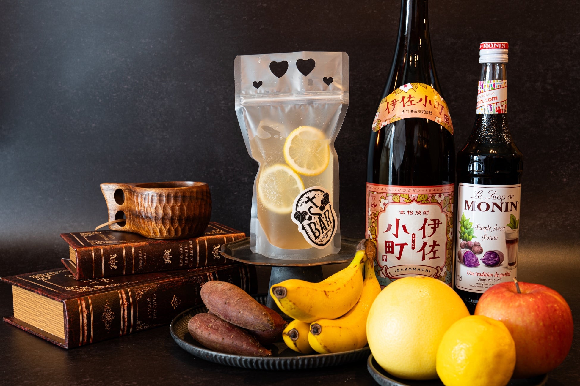 「さつまいもBAR」で提供するカクテルのパッケージはSNS映えする可愛いパウチスタイル!持ち運びしやすく、ぶら下げれば両手も空くので、会場を回り、お買い物しながらカクテルを楽しめます。