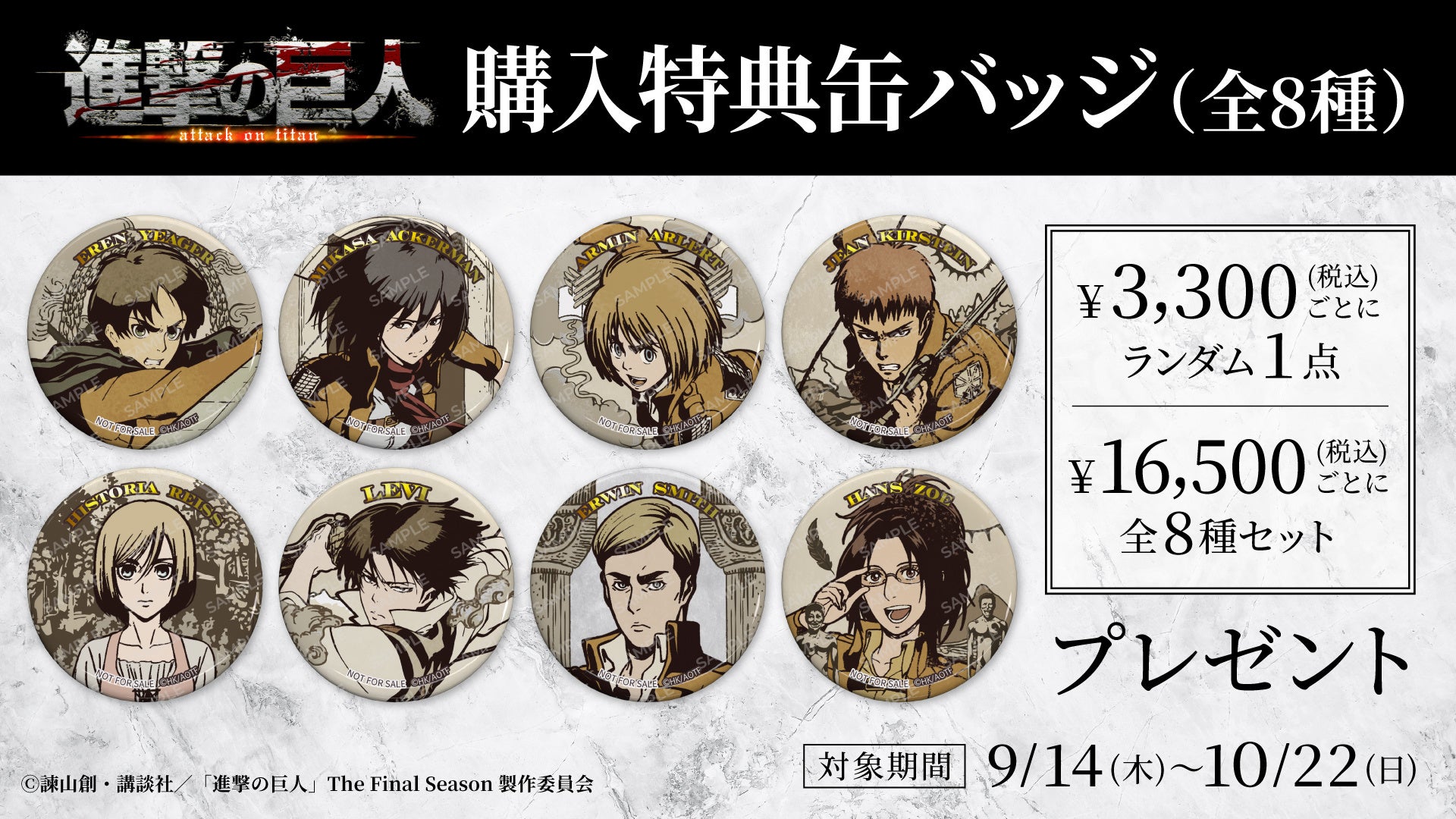 販売期間中(2023/9/14~10/22)、TVアニメ『進撃の巨人』オリジナルグッズを