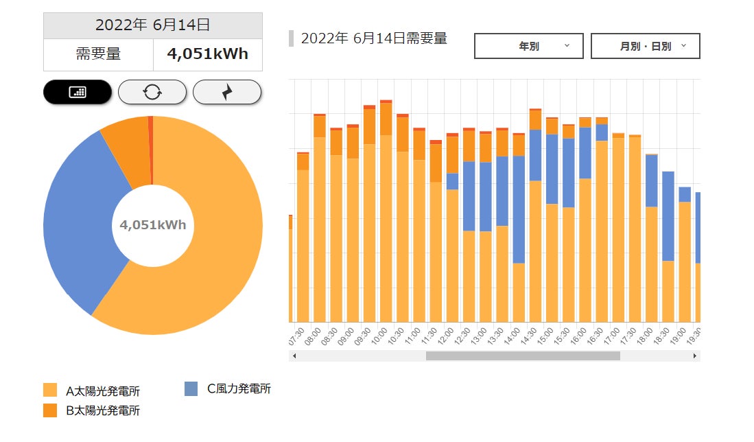 これらの施設では当社を通じて、岡山県玉野市の原木シイタケ太陽光発電所、宮城県石巻市のTS石巻発電所、長野県の長野県企業局運営発電所(7カ所)から、当社を通じて電力を購入します。このたびの発電所を指定した電力購入は、当社のブロックチェーン技術を活用した P2P電力トラッキングシステム「ENECTION2.0」を通じて実現しました。