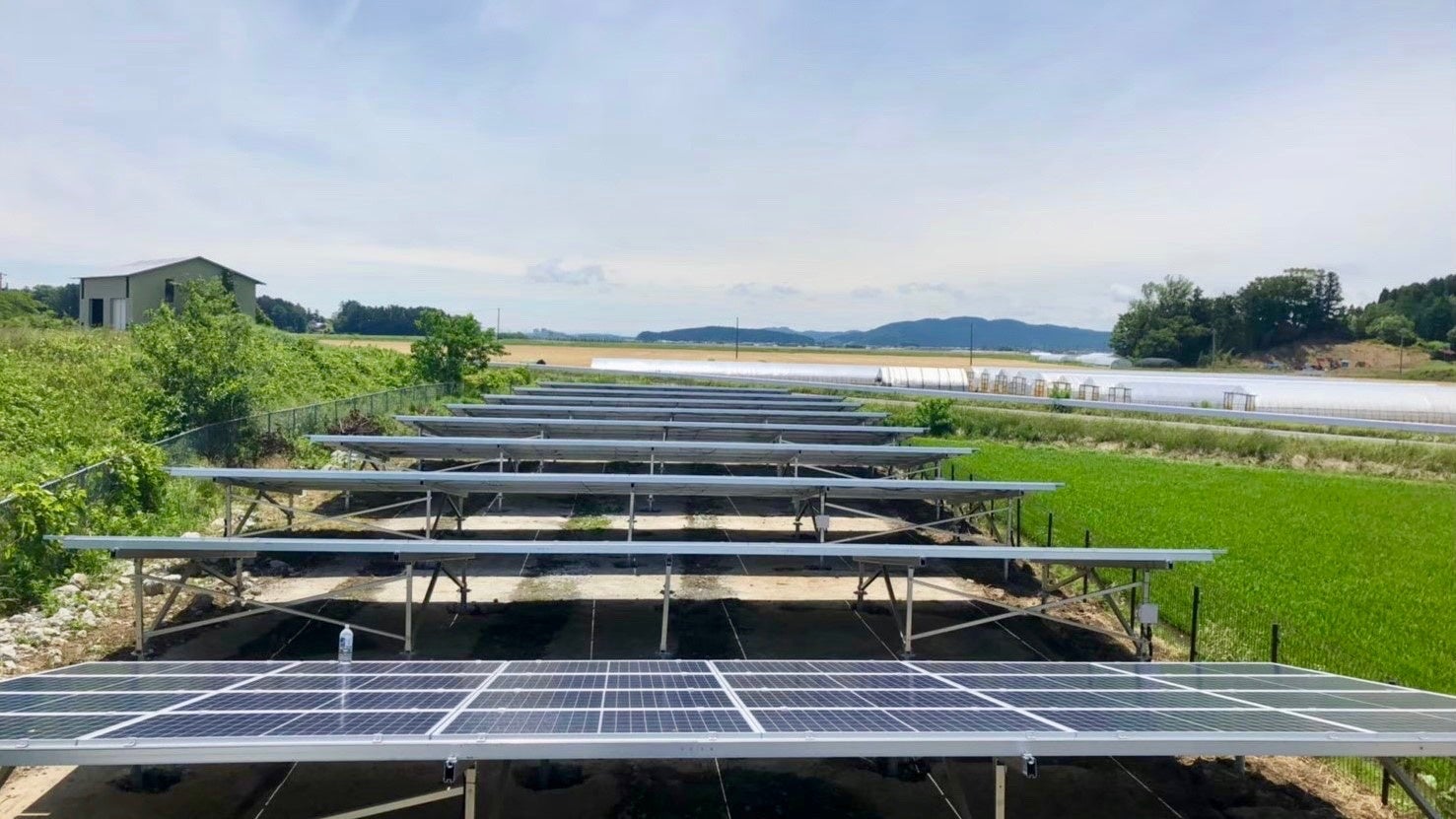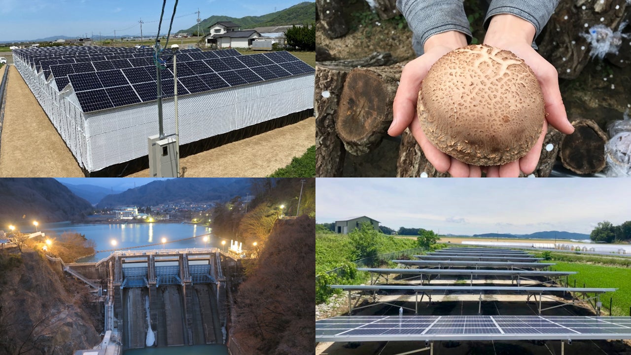 農地に太陽光パネルを設置し、農業と発電を両立するソーラーシェアリング型発電所です。太陽光パネルの下では、シイタケ菌を打ち込んだ自然木で「原木シイタケ」を栽培しています。