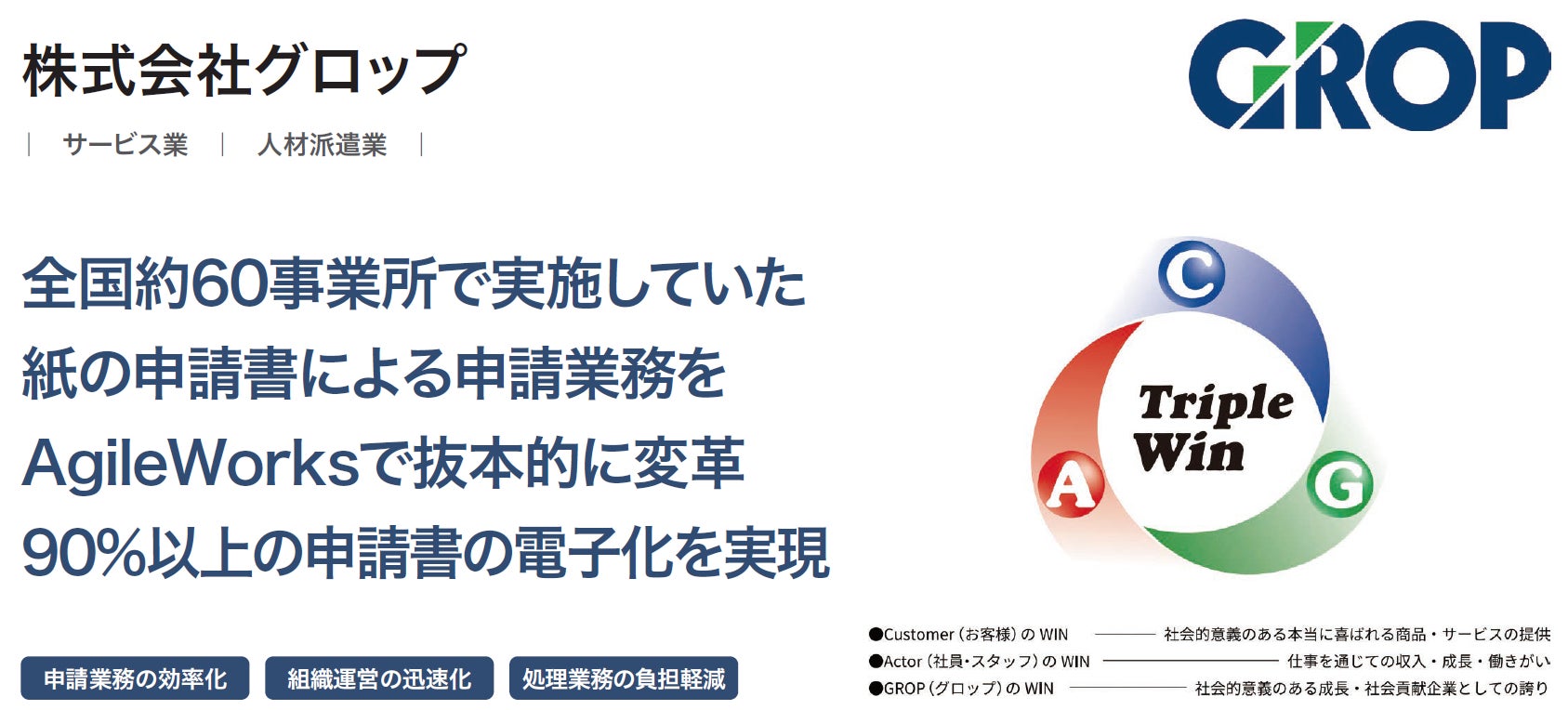 株式会社グロップが、ワークフローシステム「AgileWorks」導入により90%以上の申請書の電子化を実現