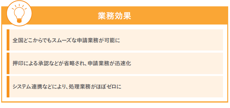 申請業務の電子化とシステム連携による業務効率化によって従来事務担当者1人につき約1時間/日を要していた処理業務をほぼゼロに削減!