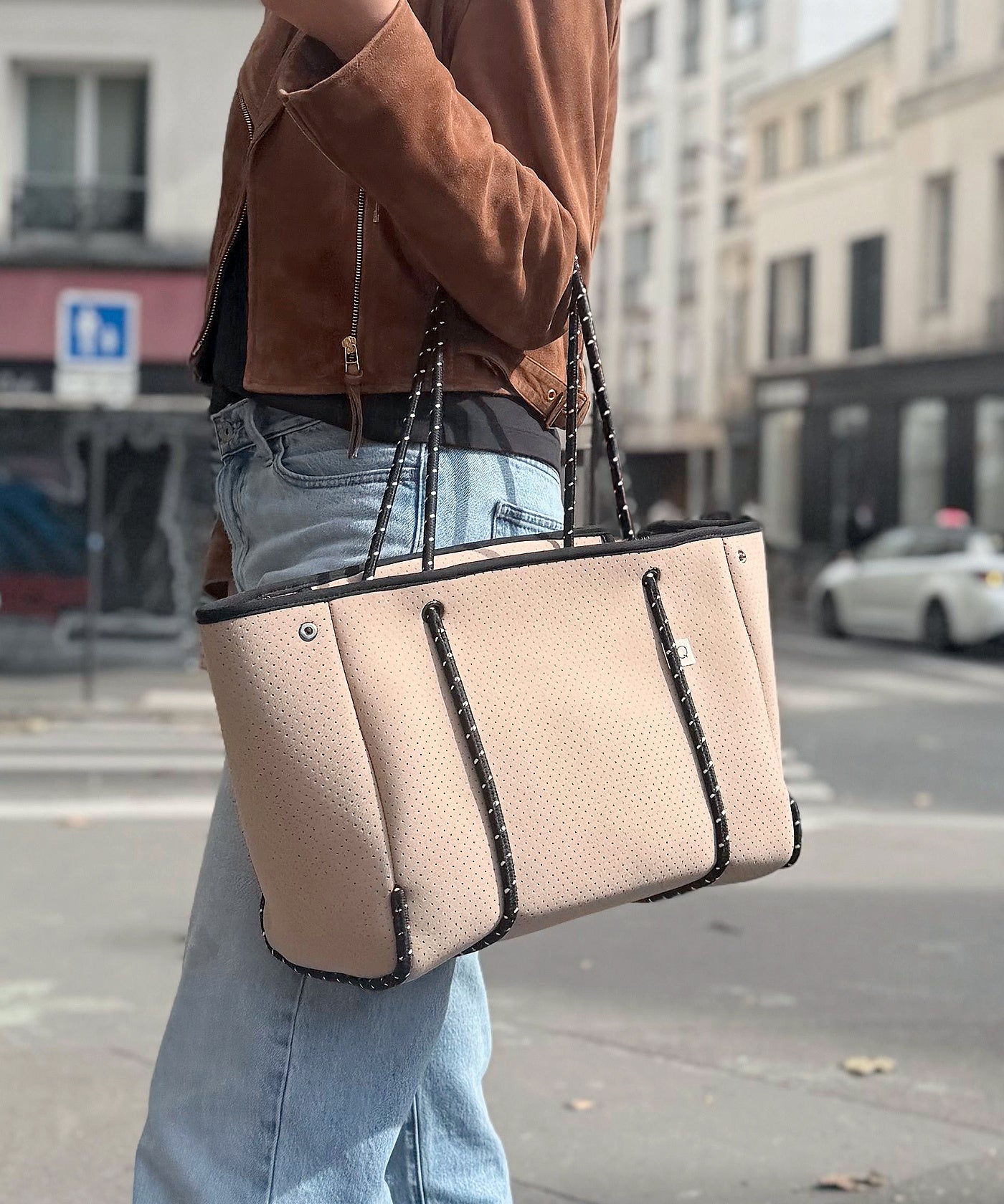 ネオプレーン素材と抜群の相性を誇り、2025年から注目度が高まり続けている絶妙なニュアンスカラー「サンドベージュ」。