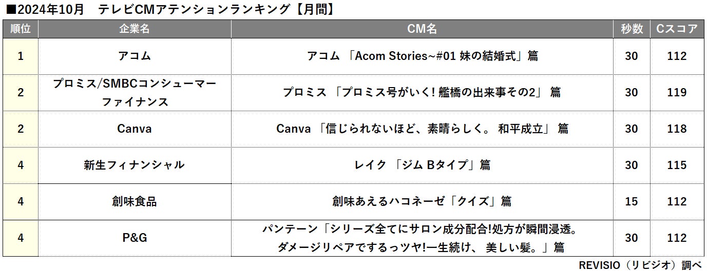 トップ3には「アコム」「プロミス」「Canva」のCMがランクイン