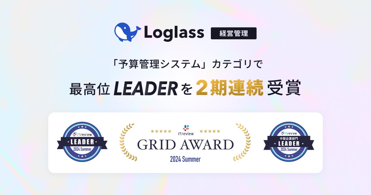 クラウド経営管理システム「Loglass」が、ITreview Grid Award 2024 Summerの「予算管理システム」カテゴリで、最高位の「Leader」を連続受賞