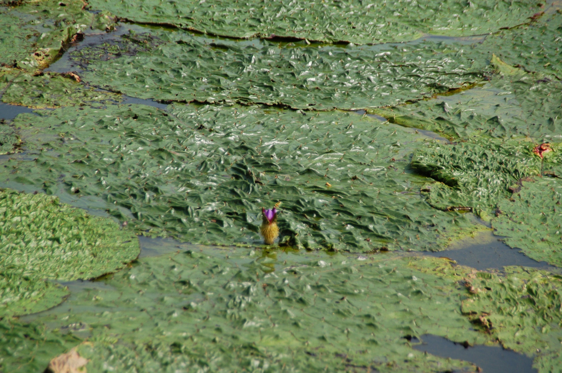 オニバスは、豊かな自然環境と生物多様性を象徴する草花です。京都府レッドデータブックで絶滅寸前種に指定されている珍しい水生植物で、市民の皆さんの努力で大切に守られています。