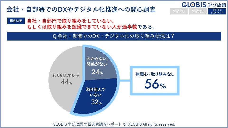 社会人の約6割が、「キャリア目標なし」「学習習慣なし」「自社DXに関心なし」 GLOBIS 学び放題 社会人意識調査から見えた、リスキリングへの意欲喚起の必要性
