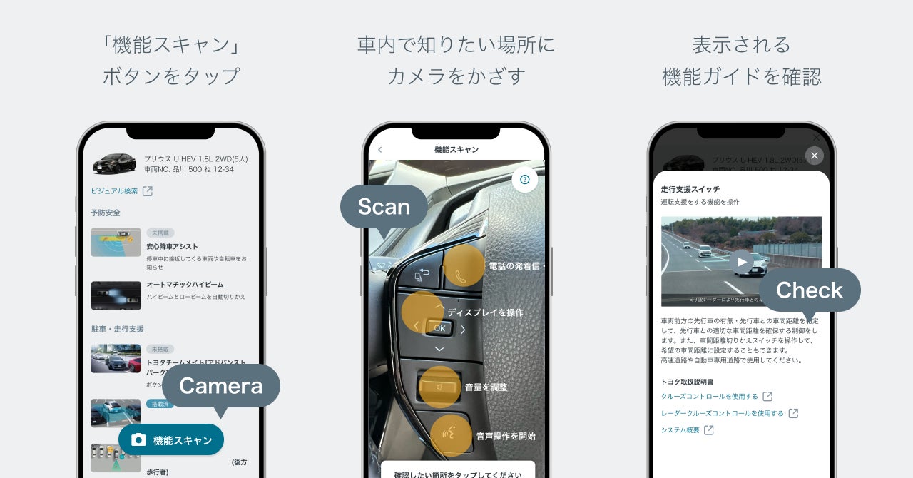 今回、24年8月30日に、ARでご案内する対象に、運転席の回りに配置されているほぼすべてのスイッチ*⁸を追加し、ガイドできる範囲を大幅に拡大しました。さらに、プリウスに続き、24年10月頃からヤリスを、12月頃からヤリス クロスを対象に加える予定です。今後は、他の車種へのさらなる展開のほか、トヨタが自社のアプリで展開できるよう、連携を始めていきます。