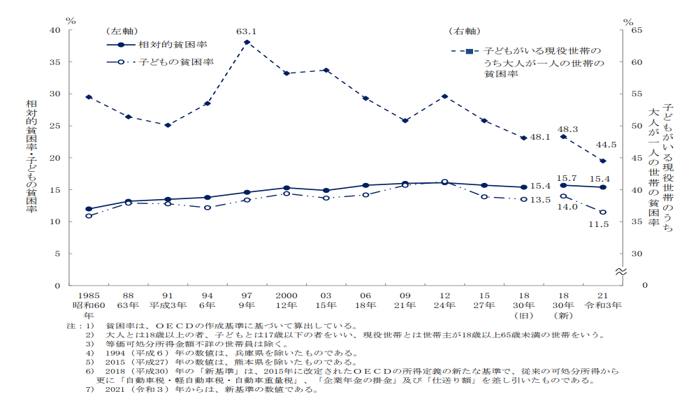 ※1)国の全世帯の等価可処分所得(手取り)の中央値の半分に満たない世帯員の割合。