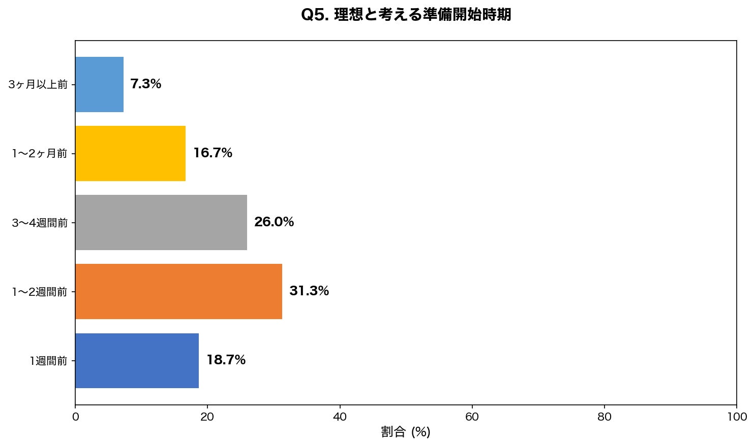 【調査結果】「1〜2週間前」が最多で実際の必要期間より短い傾向