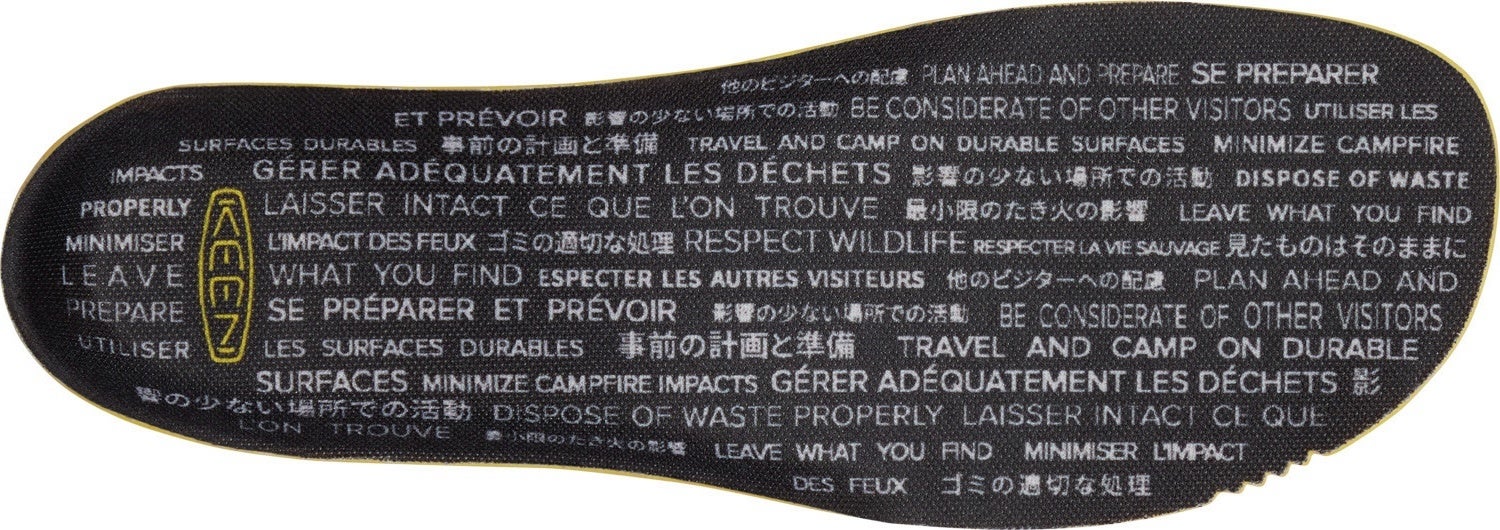 今シーズン展開するLEAVE NO TRACEコラボレーション第2弾のベースは、トレッキングシューズ『TARGHEE II MID WP(ターギー ツー ミッド ウォータープルーフ)』。幅広のラスト(木型)によるルーミーなトゥボックス構造、足裏の形状に合わせて立体成型され、加重に対しても潰れにくいポリウレタンのLUFTCELL PUのフットベッド、そして、軽量で劣化しにくく、歩行時の衝撃を緩和する硬度の異なる2種の圧縮成型EVAを組み合わせたミッドソールが優れたクッション性と安定性を実現し、中足部のESSシャンクが歩行をサポートする、登山初心者からベテランハイカーまで幅広く支持されているKEEN定番の防水トレッキングシューズです。