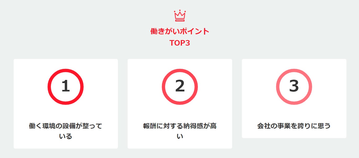 今回の調査において、ファーストアカウンティングの強みといえる「働きがいポイント」として挙げられたTOP3は、以下の通りでした。