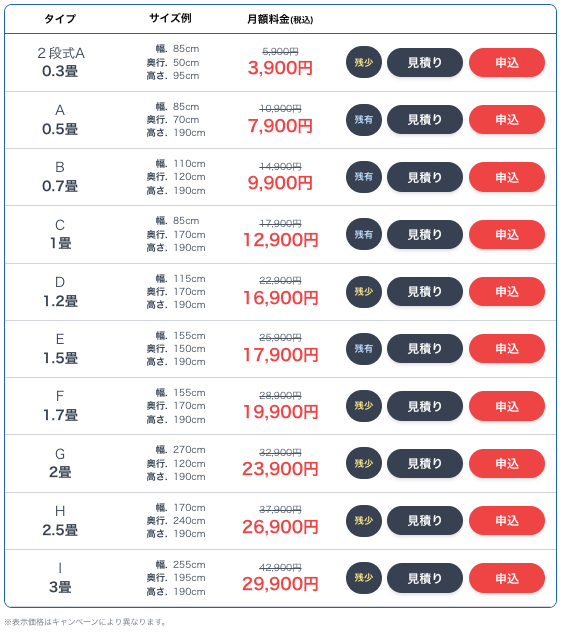 荷物以上に大きな部屋を借りてしまうことや、狭すぎて荷物が入らなかったなんていうトラブルを回避できます。