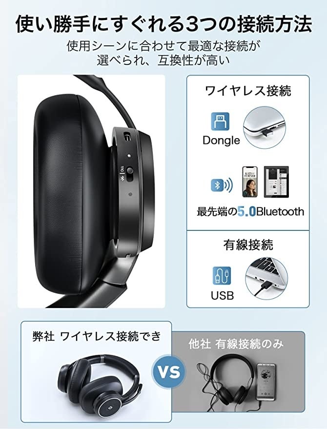 【Amazon12時間タイムセール】EMEET HS150 ヘッドセット Bluetooth 5.0 三つの接続方式、柔らかい装着感、在宅勤務にお勧め!!