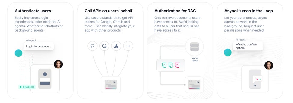 間もなく登場する「Auth for GenAI」製品は、アプリ開発者が生成AIを安全にアプリで利用できるようにします。この製品は、数十年にわたるアイデンティティと開発者向け構築の経験に基づいて構築されています。機能には以下が含まれます。