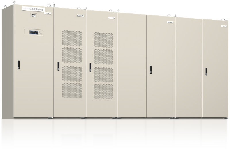 大容量48V整流装置4600A/2200A対応モデルを新開発。電力変換ユニット搭載数による容量調整や、設備に合わせた出力盤のカスタムにも対応。