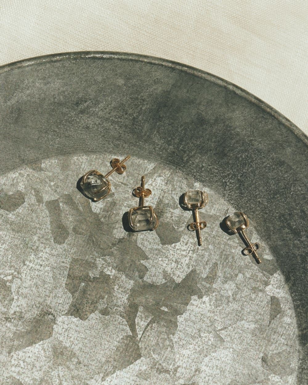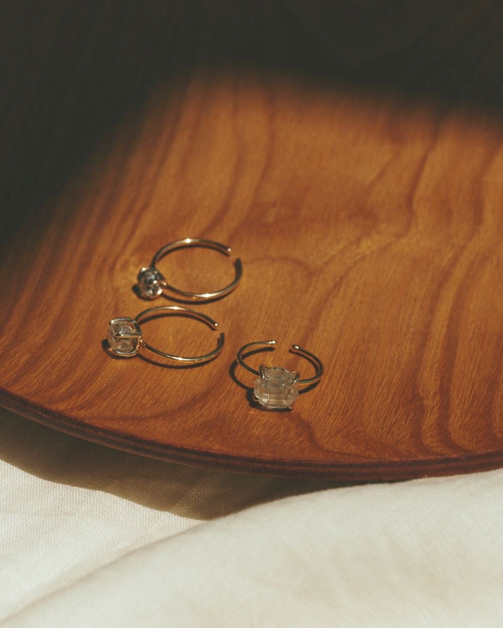 ラボグロウン ダイヤモンドの原石をそれぞれ1石ずつ使用した贅沢なピアス。あえて原石(ラフカット)という輝きのないダイヤモンドを採用し、それぞれの内包物や形をそのまま生かすデザインに。シンプルだからこそダイヤモンドの原石がもつ魅力が、輝く仕上がりになっています。