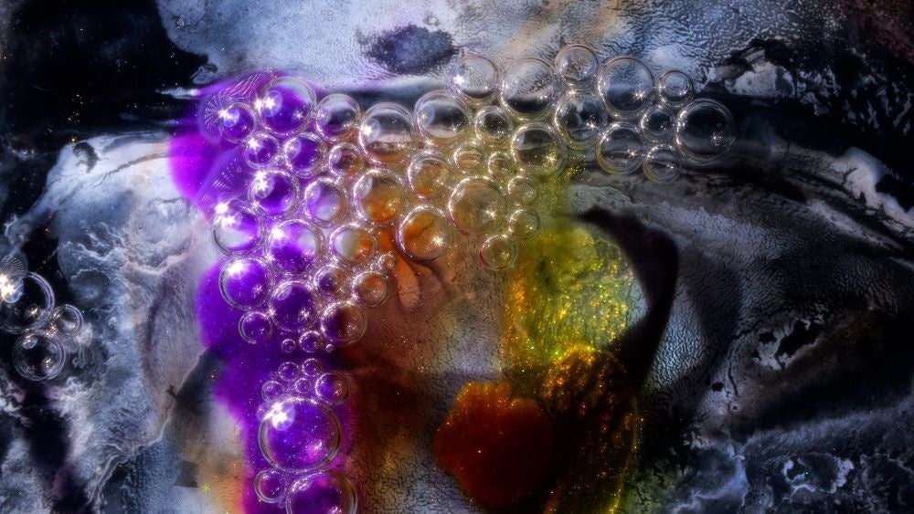 液体から固体までさまざまな材料を相互に反応させて絵を描く「Alive Painting」というパフォーマンスを行う。あらゆる現象や現れる色彩を、生物や関係性のメタファーとして作品の中に生き生きと描く。様々なメディウムや色彩が渾然となり変化していく作品は、即興的な詩のようでもある。