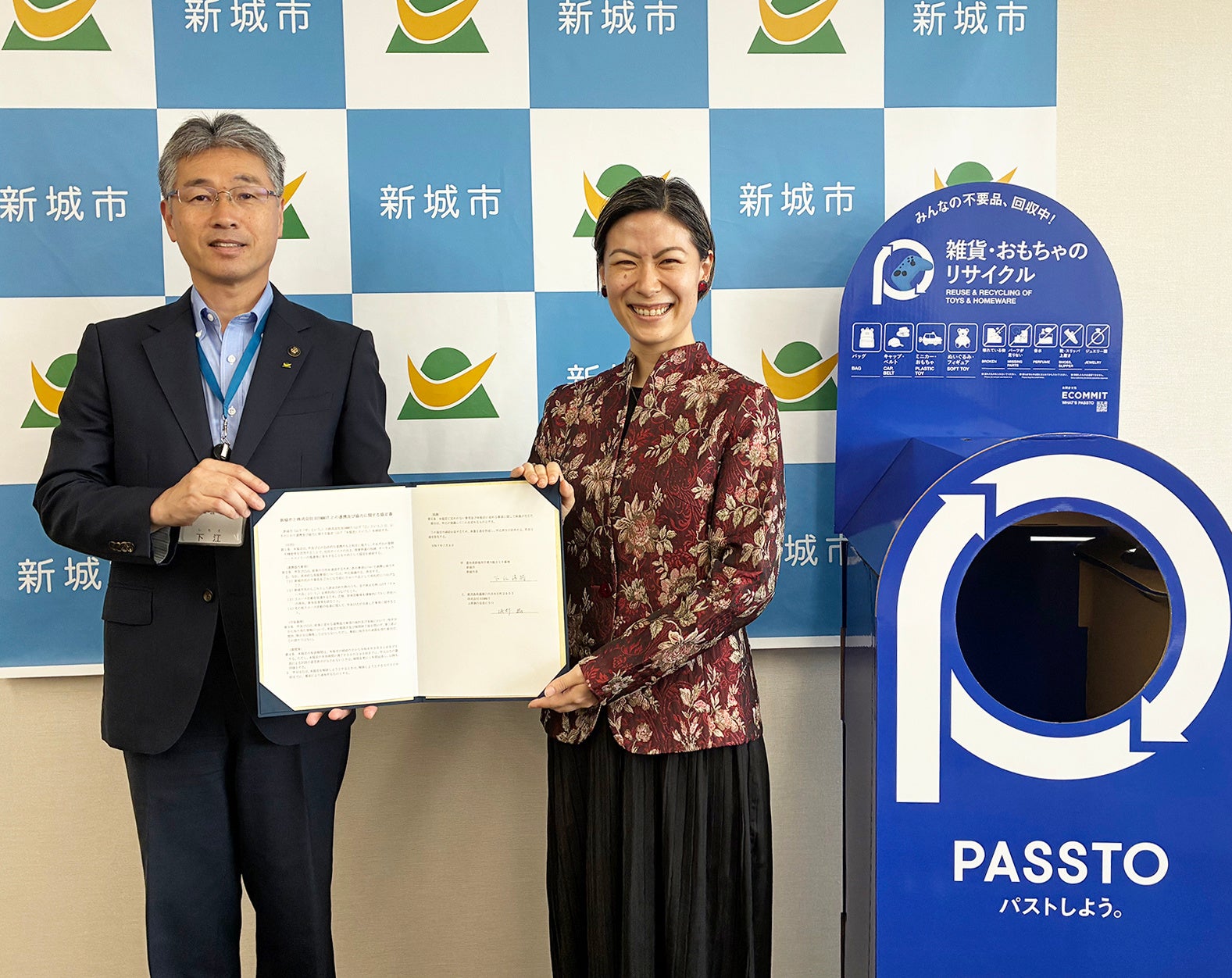 本協定により、令和7年7月8日より、ECOMMITが運営する資源循環サービス「PASSTO(パスト)」の不要品回収ボックスを、新城市クリーンセンターに設置するほか、クリーンセンターに持ち込まれたものの中からまだ使えるものを救い出し定期回収を行うこと、同じく新城市クリーンセンターで行われるリユース品のイベント回収にて市民から直接不要品を回収するなどの実証実験を行い、ご家庭で不要になった雑貨やおもちゃを廃棄するのではなく、リユースへと繋げる仕組みを提供することで、地域全体で資源循環に取り組みます。