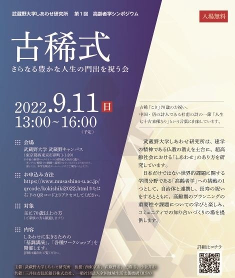 | イベント名 | 第1回 高齢者学シンポジウム 「古稀式 ~さらなる豊かな人生の門出を祝う会~」 |