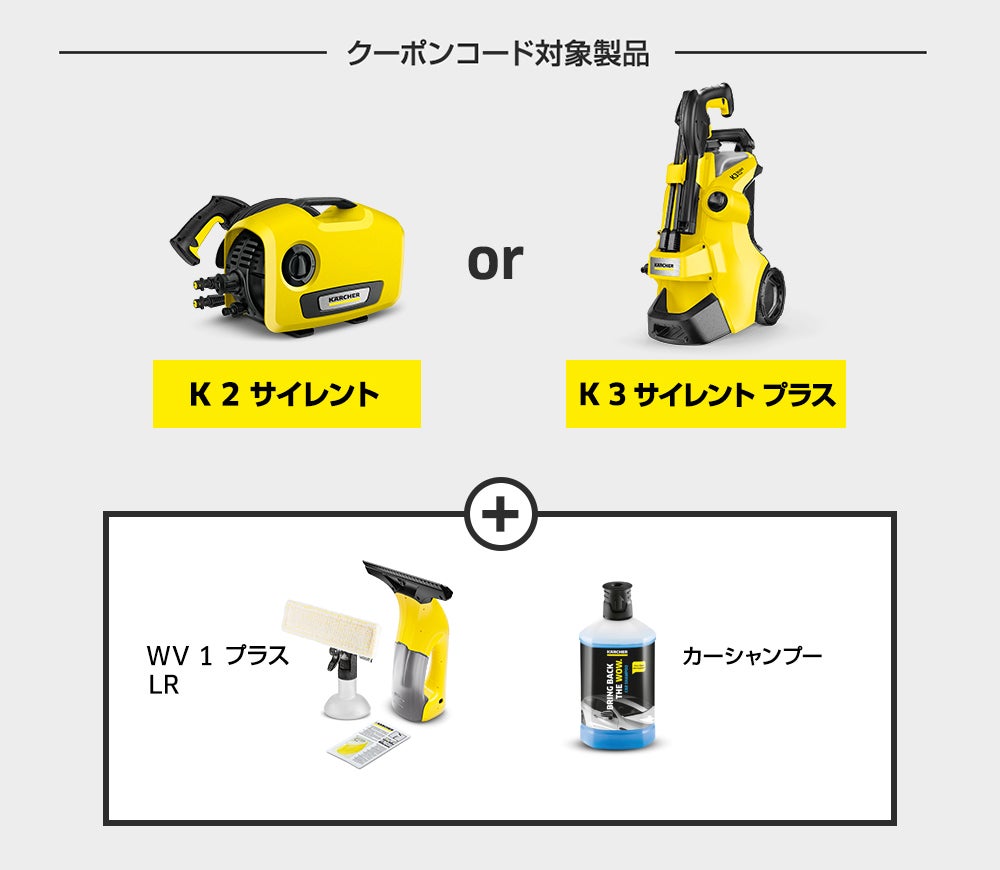 高圧洗浄機(対象品)と、ウォーターバキュームクリーナーWV 1 プラス LRとカーシャンプーの特別セット(クーポン利用時)