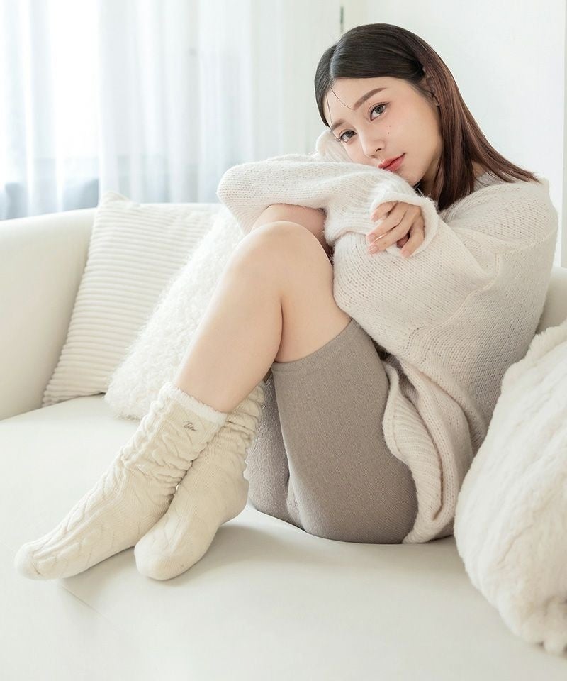 tu-hacciの人気ルームウェア「ナイトブラ付きワンピースRakusia Sleep」との組み合わせにピッタリなもこもこソックス。足元から心までほっこり温めてくれる、やさしい履き心地とデザインに仕上げました。